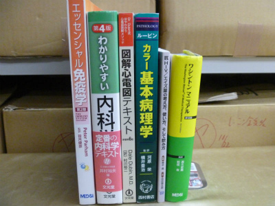 買取させて頂いたものは、『エッセンシャル免疫学第2版』、『ルービン カラー基本病理学』、『わかりやすい内科学第4版』、『ワシントンマニュアル第12版(原著第33版)』、『図解心電図テキスト―Dr.Dubin式はやわかり心電図読解メソッド』、『抗HIV/エイズ薬の考え方,使い方,そして飲み方』です。書き込みはなく、状態も良いものばかりでした。中でも、『エッセンシャル免疫学第2版』は、1点1000円で買取させて頂きました。※こちらの買取金額は、2014年10月時点の金額です。